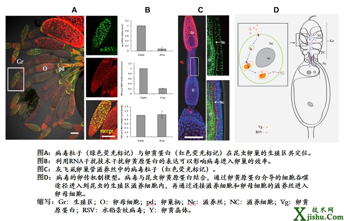 2014年3月,中國(guó)科學(xué)院微生物研究所方榮祥研究組聯(lián)合中國(guó)農(nóng)科院和福建農(nóng)林大學(xué)的科學(xué)家在PLOS Pathogens雜志上發(fā)表了他們對(duì)植物病毒介體昆蟲(chóng)的卵傳機(jī)制的研究結(jié)果(Transovarial Transmission of a Plant Virus Is Mediated by Vitellogenin of Its Insect Vector)。