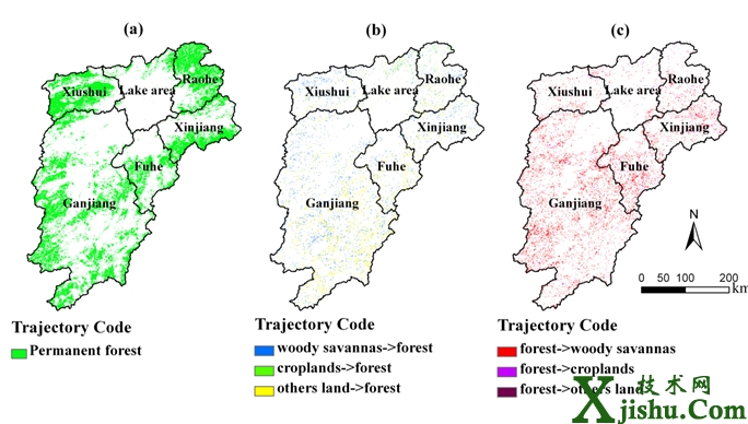 鄱陽湖流域地表覆被變化軌跡空間分布