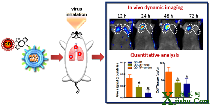近紅外量子點標記流感病毒(顆粒)及活體成像示意圖