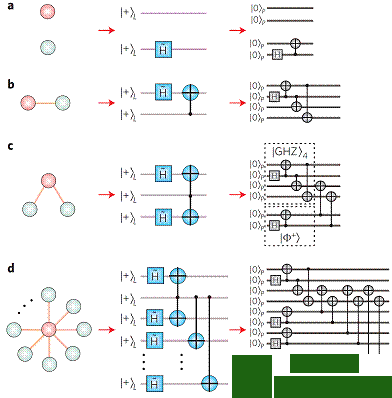 圖1 制備級聯(lián)貓態(tài)的實驗方案,該方案可以擴展到任意比特數(shù)